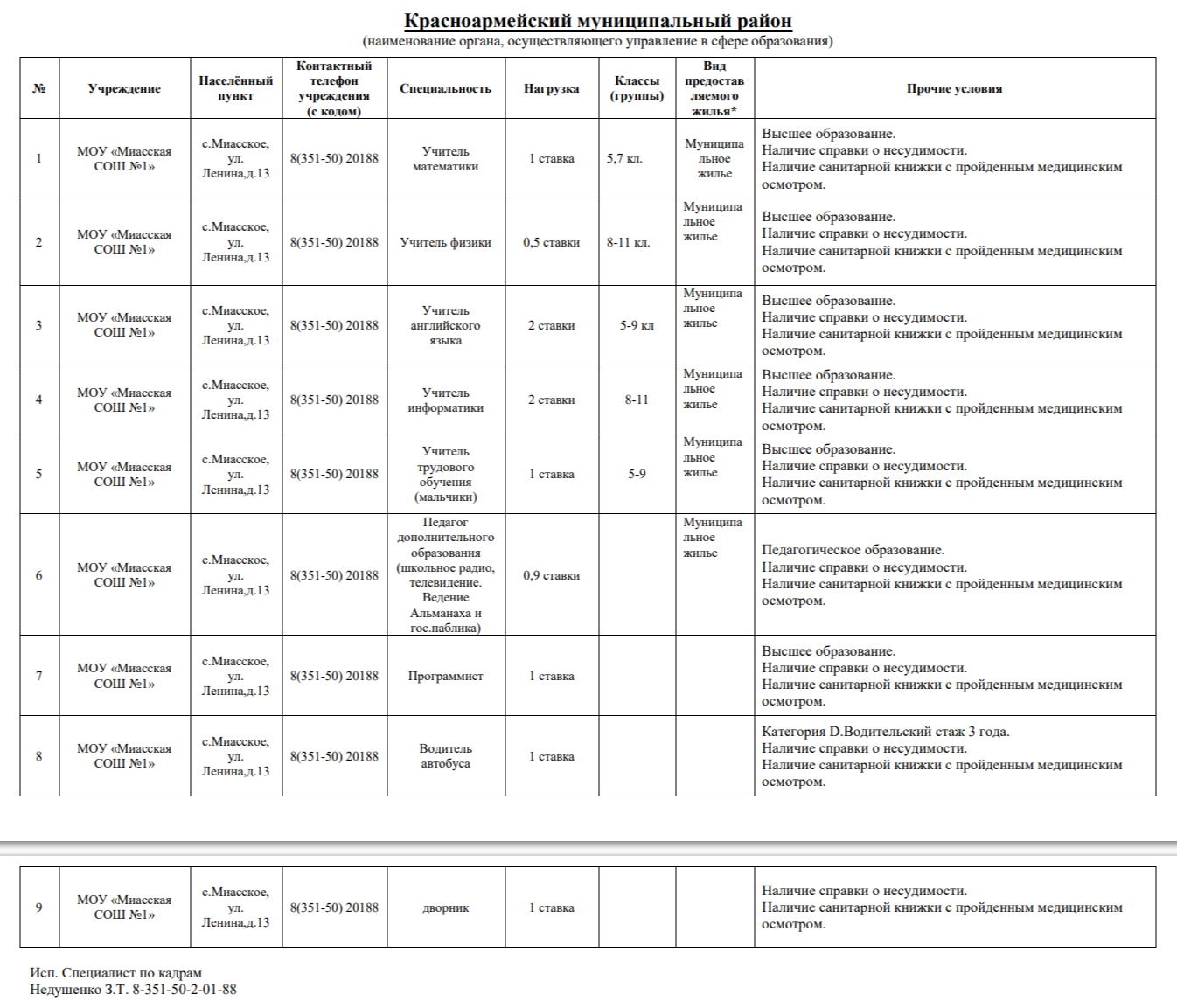 Вакантные места для приёма на работу